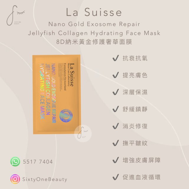 La Suisse Nano Gold Exosome Repair Jellyfish Collagen Hydrating Face Mask 8D納米黃金修護奢華面膜