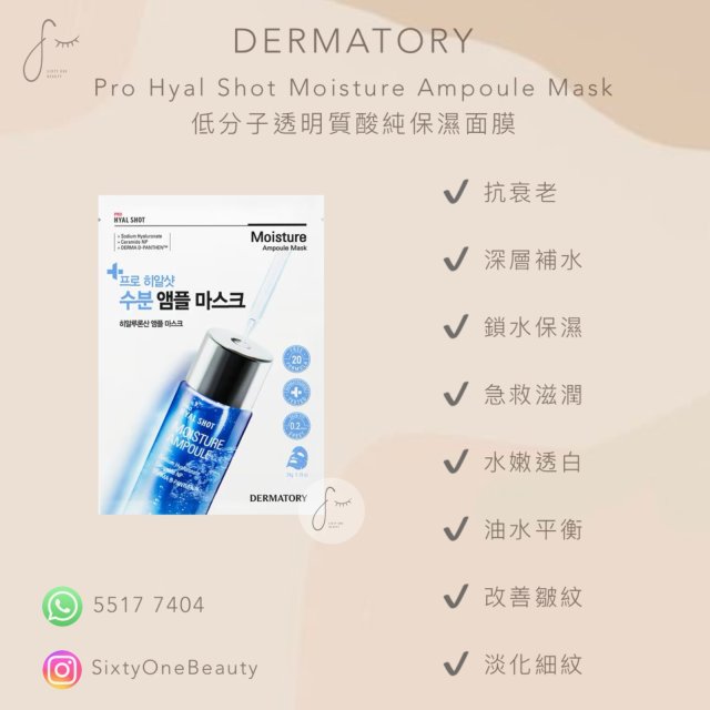 DERMATORY Pro Hyal Shot Moisture Ampoule Mask 低分子透明質酸純保濕面膜