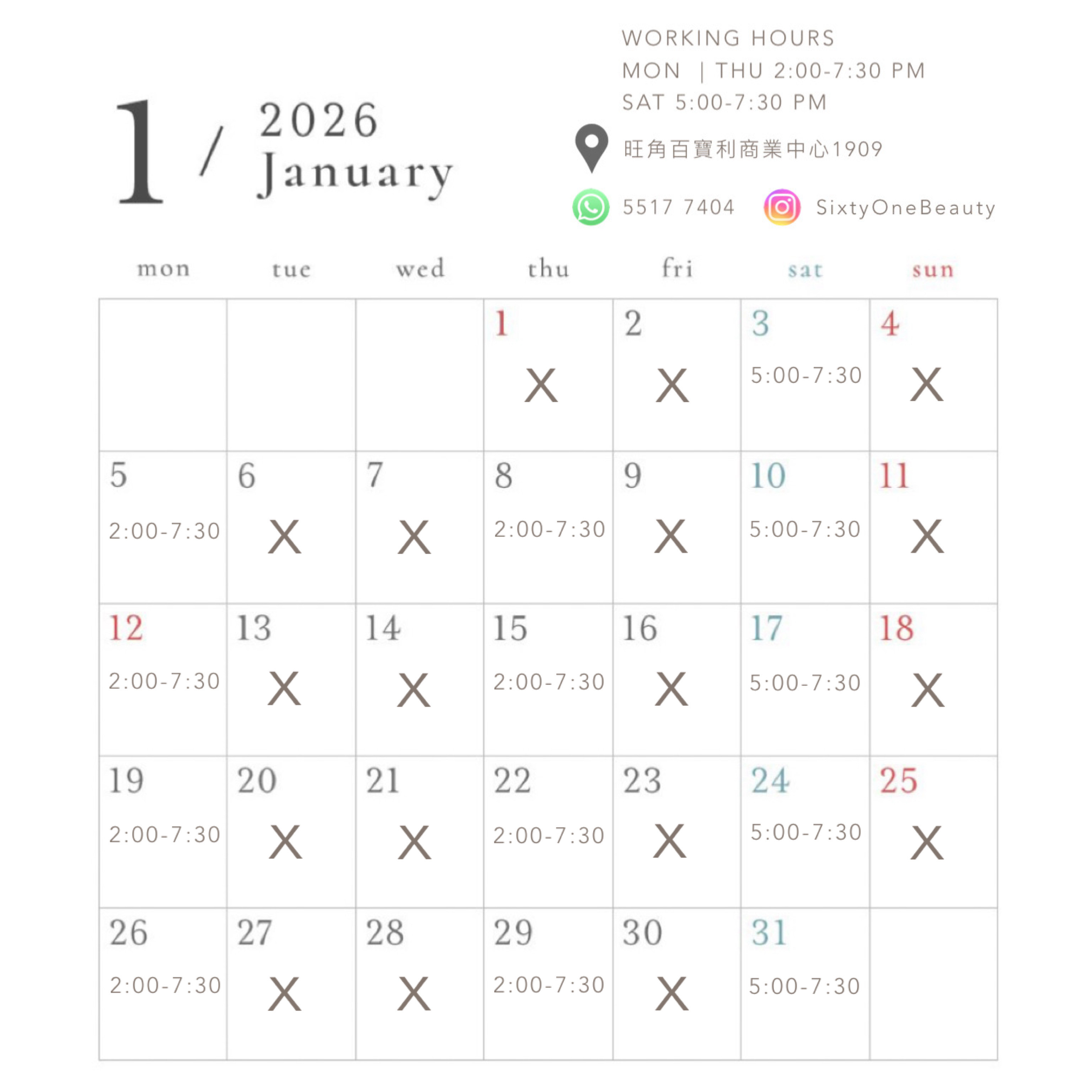 *請留意IG story 門市每月及當日開放時間