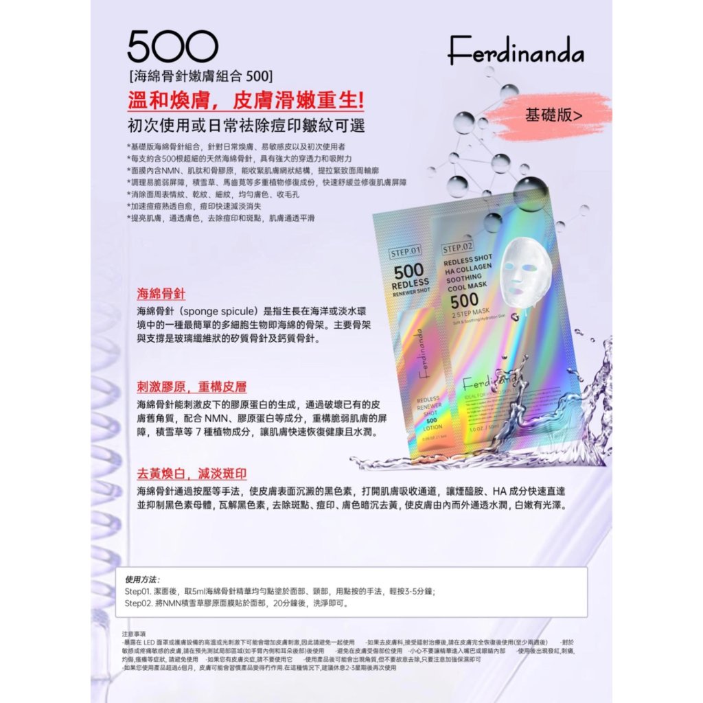 FERDINANDA海綿骨針煥膚組合是專為解決肌膚老化問題而設計的護膚產品,能有效推平眼紋、法令紋、口周囊袋和雙下巴等問題,讓肌膚從內到外重獲彈嫩和平滑。該組合分為基礎版F500和進階版F1000,滿足不同需求的肌膚修護。